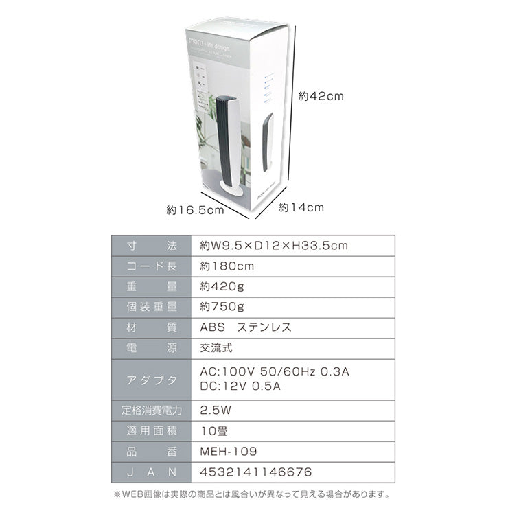 空気清浄機 卓上 コンパクト 匂い ほこり マイナスイオン タッチスイッチエアピュアクリーナー MEH-109 省エネ アロマ 静音