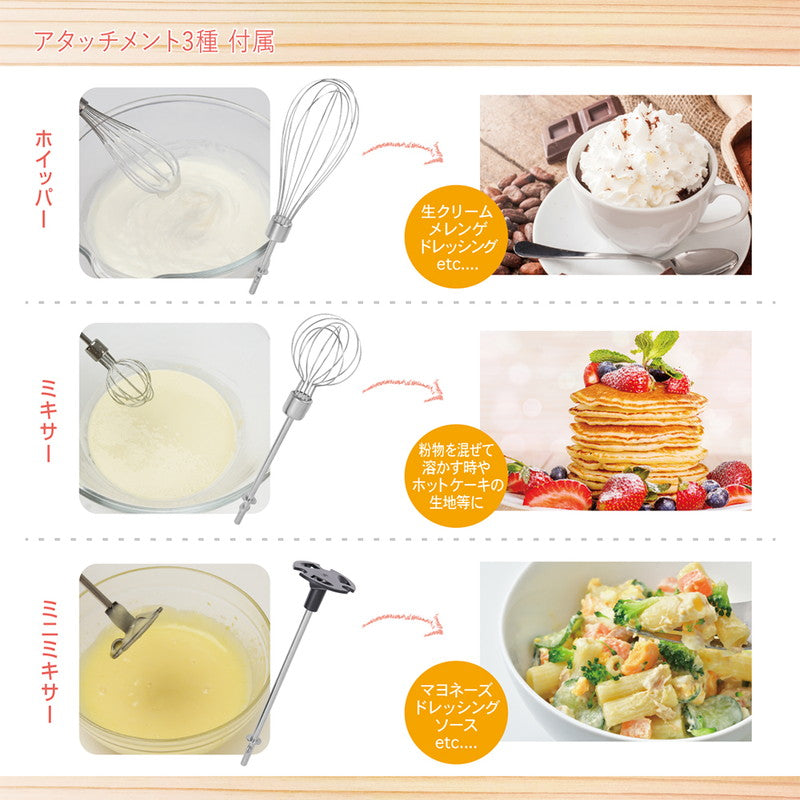 ●用途に合わせてアタッチメントの向きをお好みの角度に変形可能なハンドミキサー 混ぜる作業をより簡単、手軽に