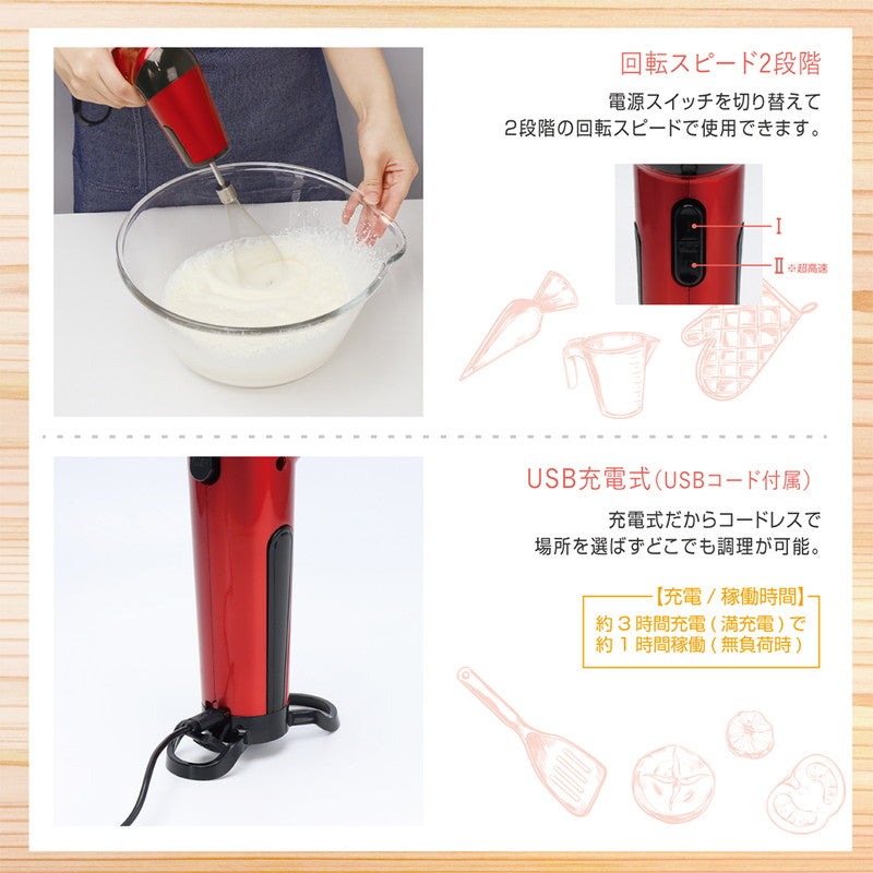 スウィングクック ハンドミキサー ハンディブレンダー 角度調整可 USB充電式 ハンドブレンダー ミキサー