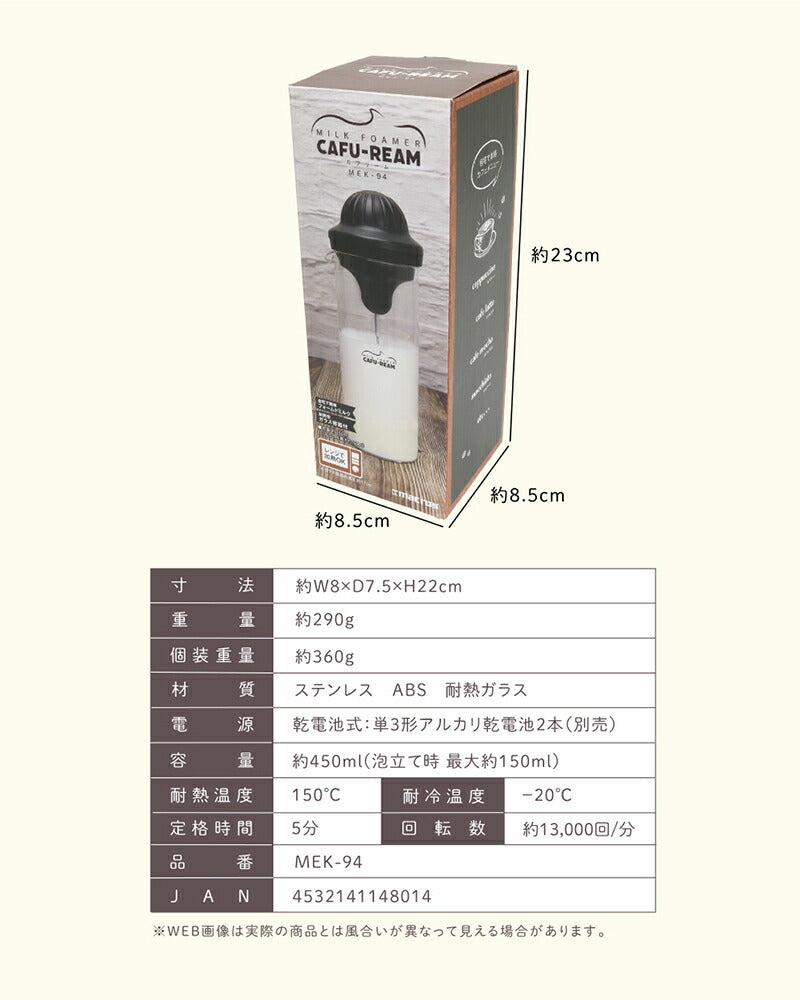 ミルクフォーマー カフリーム MEK-94 ミルク 泡立て器 シャフト 2連 電動 電動泡立て フォームドミルク フローサー カフェラテ カフェモカ カプチーノ マキアート ラテ 乾電池式