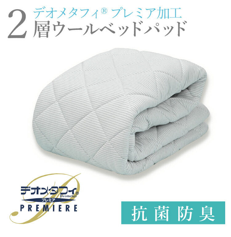 2層式ウールベッドパッド シングル 100×200cm ホワイト デオメタフィプレミア加工 抗菌防臭 洗濯可能 洗える ウォッシャブル BOMA 丸八真綿 ゴムバンド付 敷きパッド ベッドパッド(代引不可)