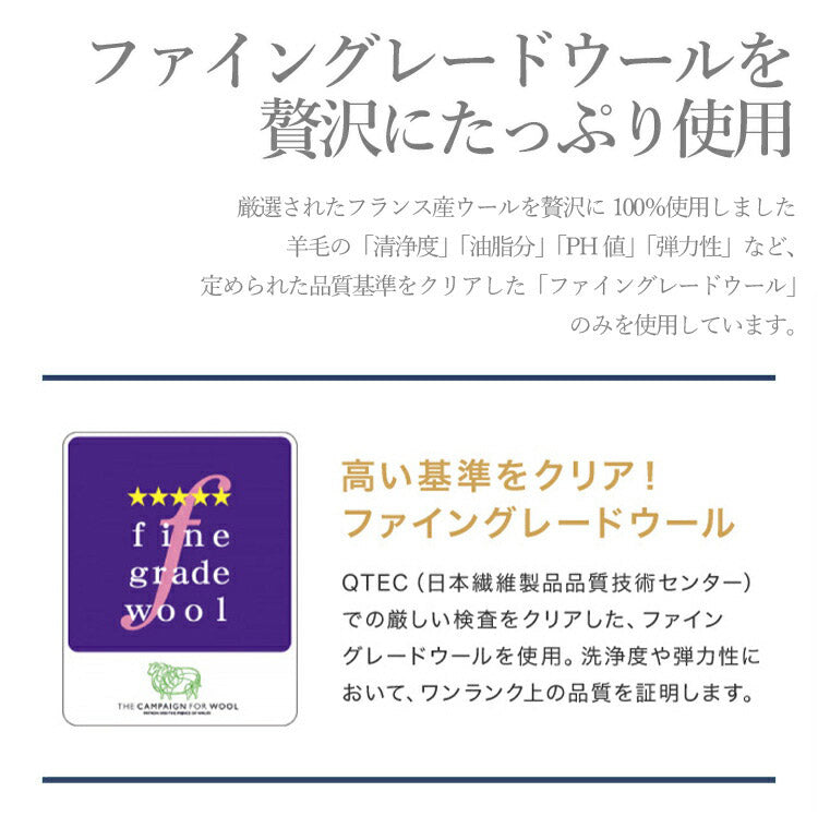 詰めもの:上層/レーヨン60% ポリエステル40%、下層/羊毛100&