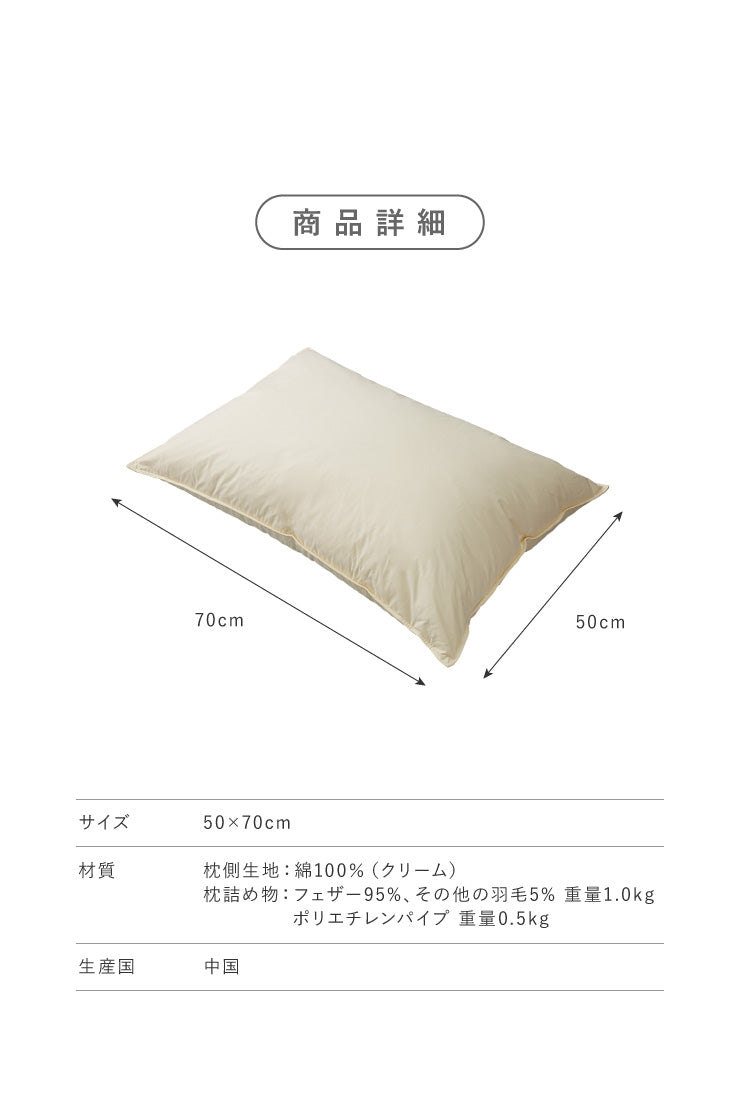 枕 コンビネーション枕 パイプ 羽根 丸八真綿 ホテル仕様 70×50cm ビッグ 両面対応 ストレートネック 綿100% クリーム 安眠 快眠 まくら ピロー 羽毛まくら 羽毛枕 フェザーパイマー枕 Sleep Artist