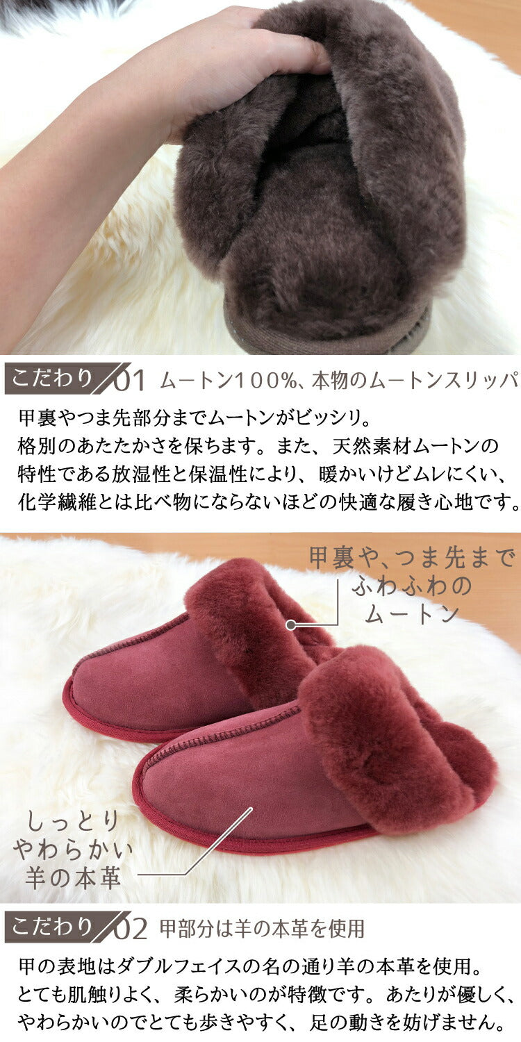 ムートン100%の暖かスリッパ