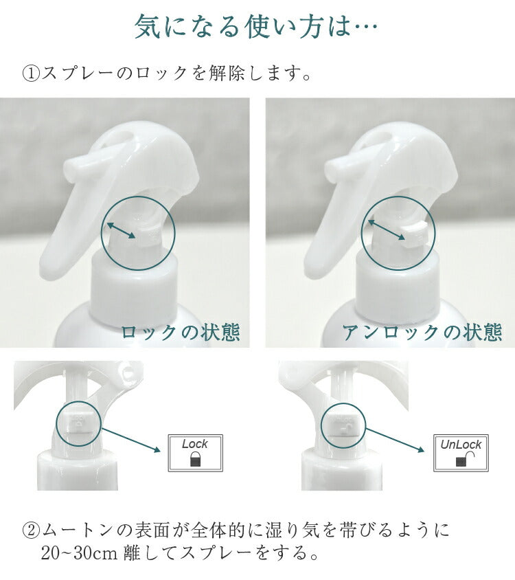 ○シミやべたつきの原因となるため、1度にたくさんスプレーをしない。