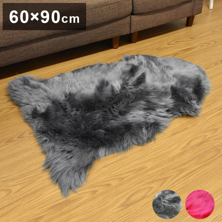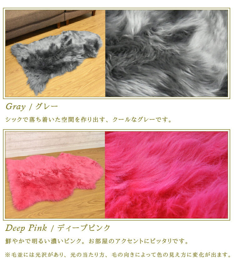 アウトレット 在庫処分 洗える長毛ムートンラグ 1匹 グレー ディープ ピンク 高級天然ムートン ムートンラグ ムートンフリース 長毛(代引不可)
