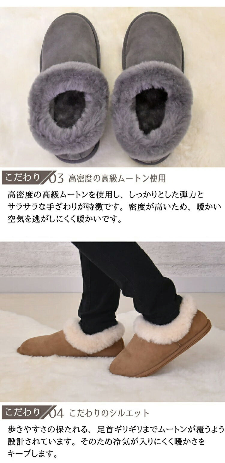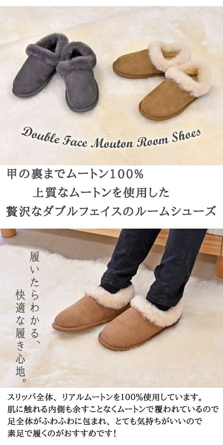 ムートンスリッパ ダブルフェイスルームシューズ Sサイズ ムートン ルームシューズ 来客用 天然素材 ブラウン グレー(代引不可)