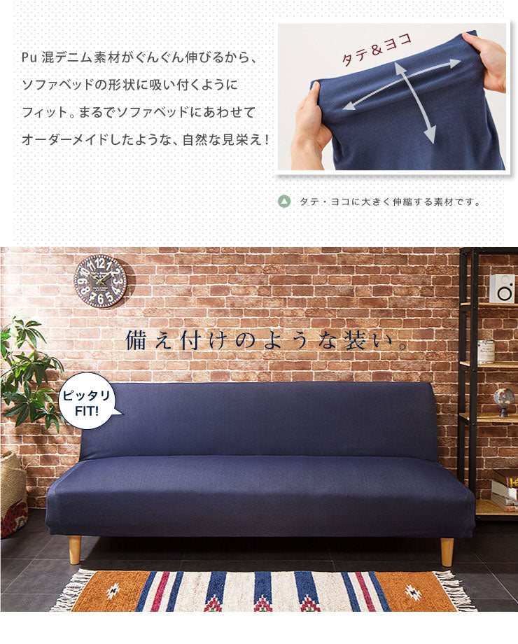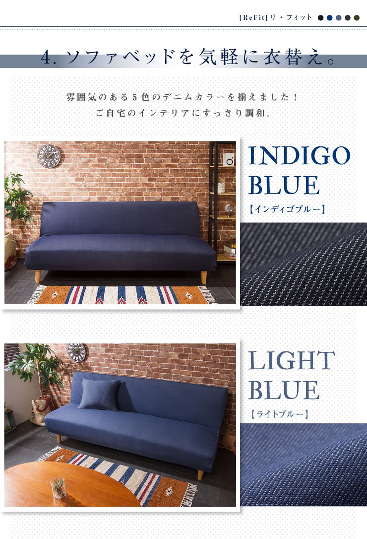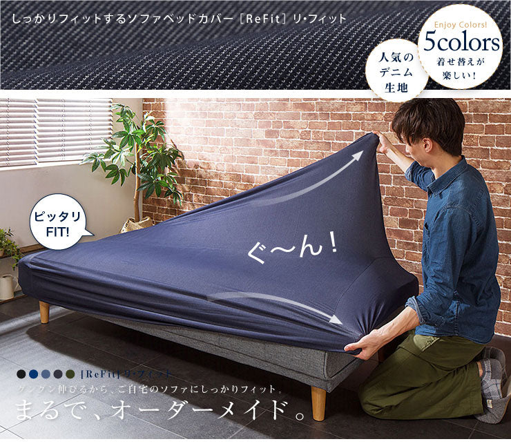 ソファーベッドカバー ニットデニム生地 北欧 おしゃれ 洗える ウォッシャブル 汚れ防止 フィット ズレない ストレッチ 伸縮 [ReFit] リ・フィット カバー ソファーカバー ソファーベッド ソファベッド ベッドカバー