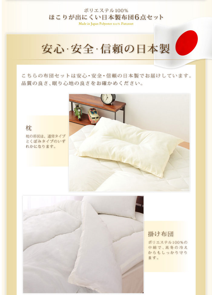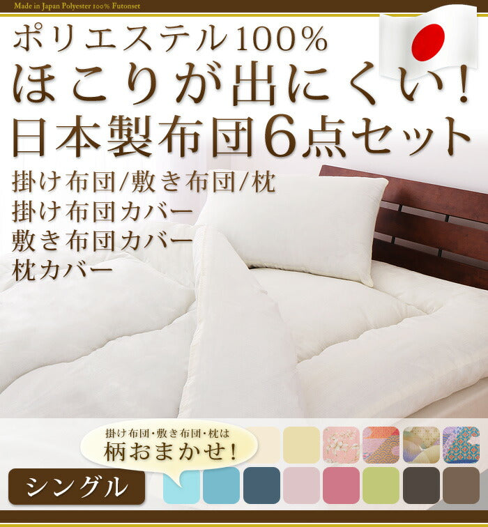 日本製 カバー付き布団6点セット シングル 柄おまかせ ほこりが出にくい布団 国産 布団セット 6点セット 布団 ふとん 新生活