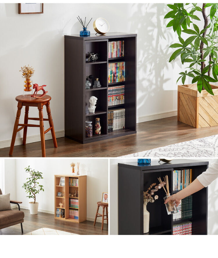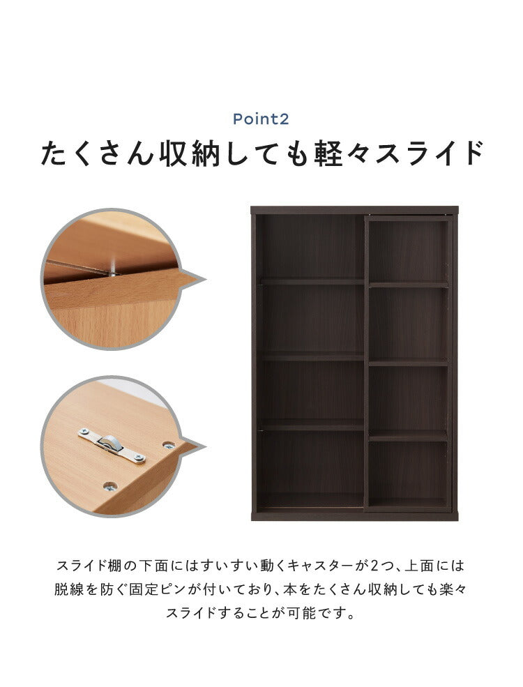 本棚 書棚 スライド式 幅60 シングル 2個セット 木製 コミックラック 漫画 書籍 収納 大容量 ブックシェルフ 木目 おしゃれ ブックラック 書斎棚