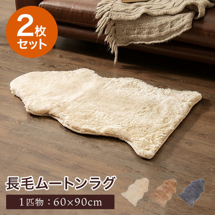 ムートンラグ 1匹サイズ 2枚セット オーストラリア産 長毛 ムートン ラグ もこもこ 毛皮ラグ 敷物 ムートンフリース 60×90