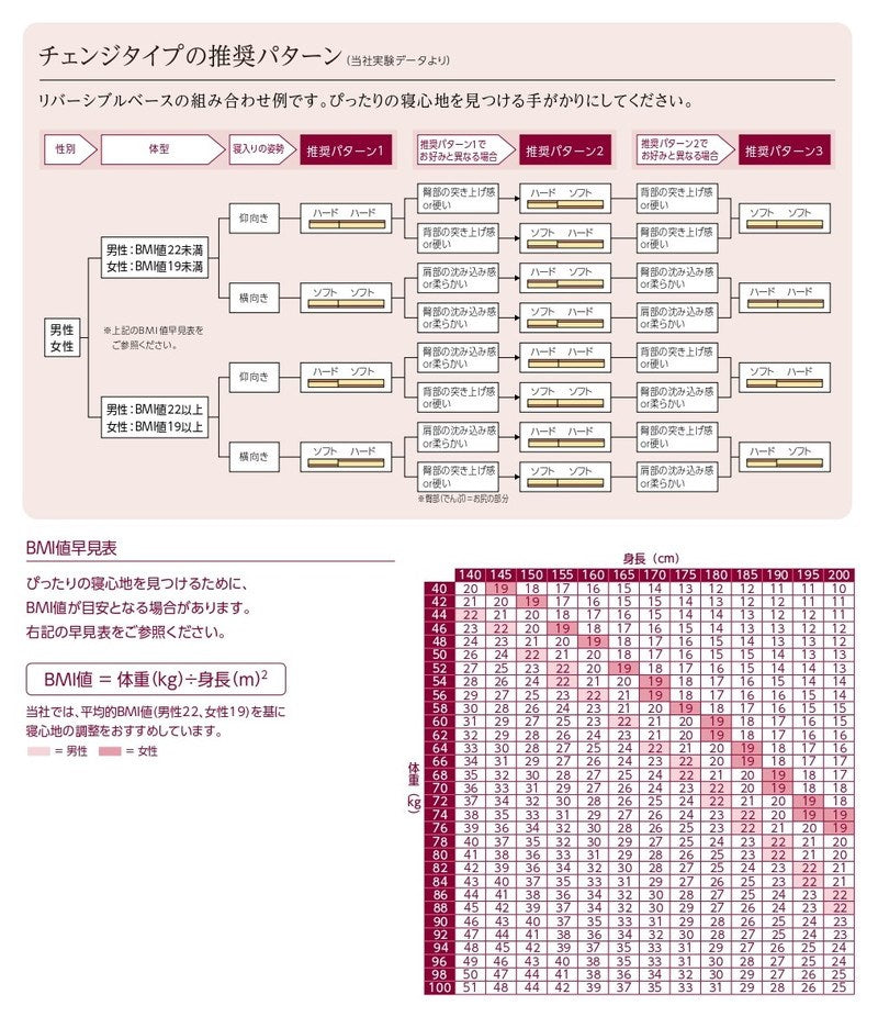 リバーシブルベースでご購入後に硬さの変更が可能です。