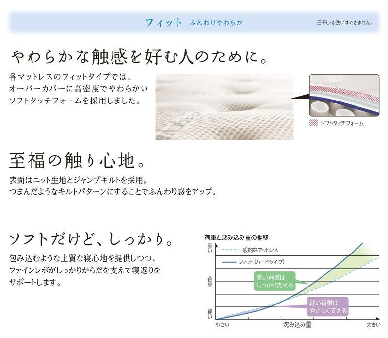 包み込むような上質な寝心地を提供しつつ、ファインレボがしっかりからだを支えて寝返りをサポートします。