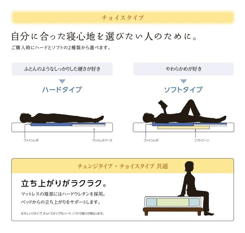 包み込むような上質な寝心地を提供しつつ、ファインレボがしっかりからだを支えて寝返りをサポートします。