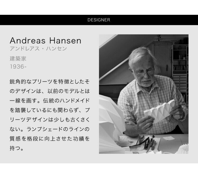 1901年、デンマークの建築家 P.V. イェンセン・クリントが日本の折り紙をヒントに、オイルランプのあかりを調節するためのプリーツのシェードを作りました。