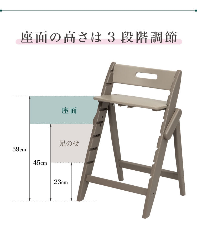 座面高:45cm~59cm(上から5番目~3番目の溝)