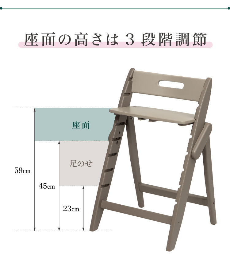 座面高:45cm~59cm(上から5番目~3番目の溝)