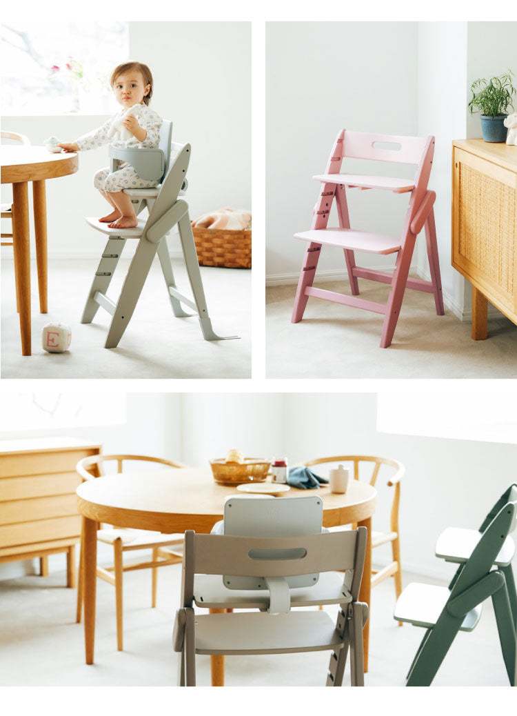 座面の着脱と高さ調節が簡単なイッピーは生後6か月頃のお子さまからママ・パパまで家族みんなでシェアすることができます。