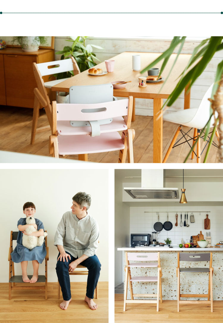 同じ目線で食卓を囲む、向かい合ってお話をする、そして一人の時間にも。イッピーは家族の一日を共に過ごします。
