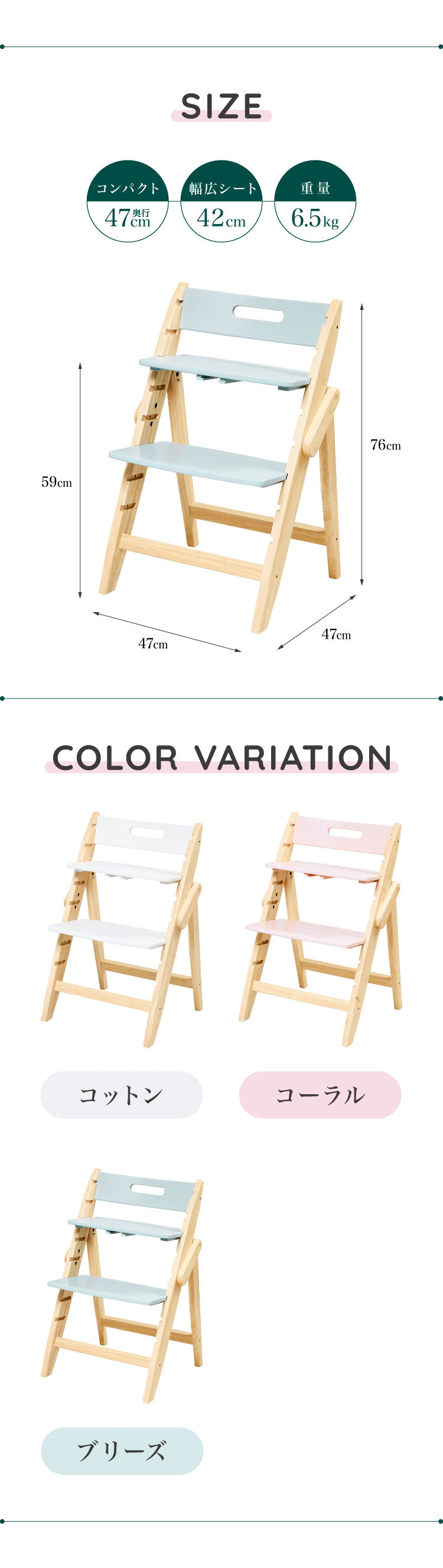 座面の着脱と高さ調節が簡単なイッピーは生後6か月頃のお子さまからママ・パパまで家族みんなでシェアすることができます。
