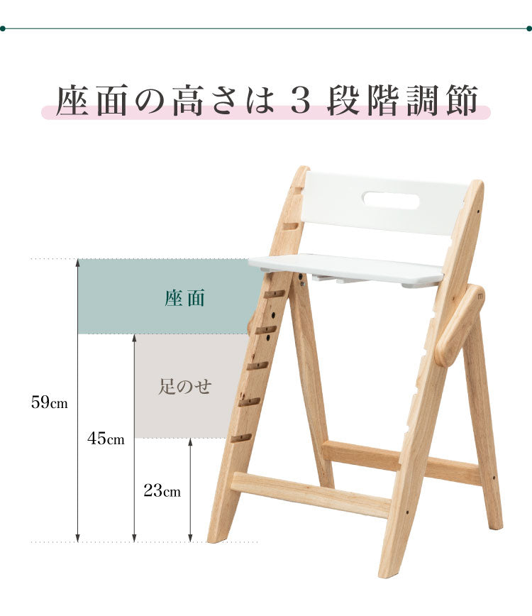 座面高:45cm~59cm(上から5番目~3番目の溝)