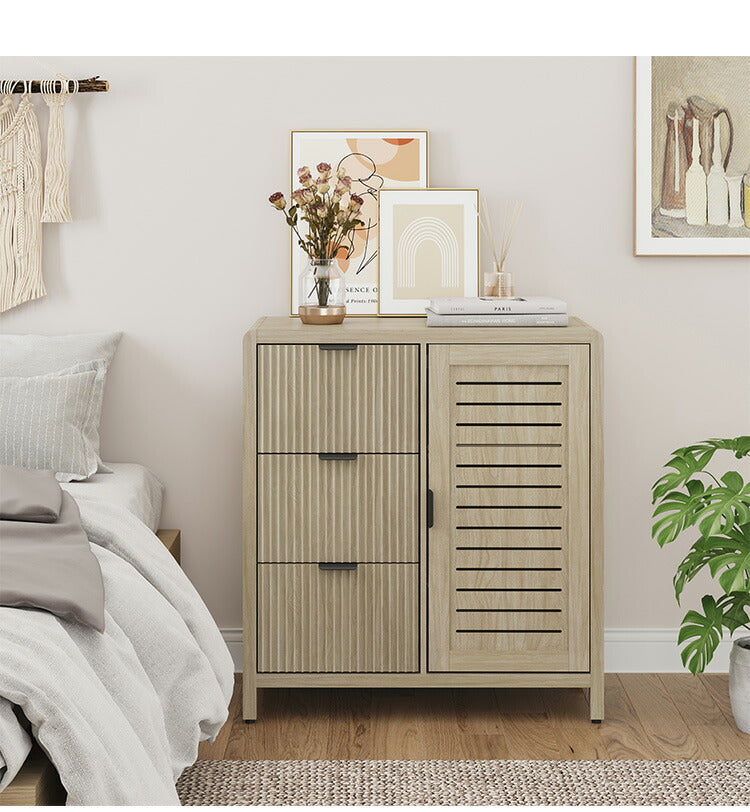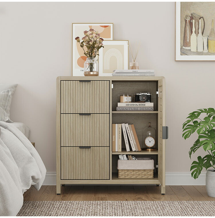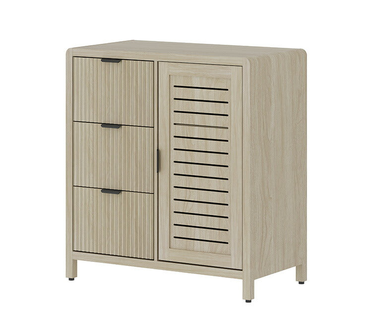 リビングに置いてサイドボードとして利用したり、キッチンに置いてトースターやケトルなどを置く台やベッド脇の収納など、様々なシーンで活躍します。