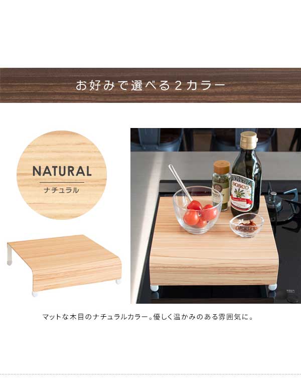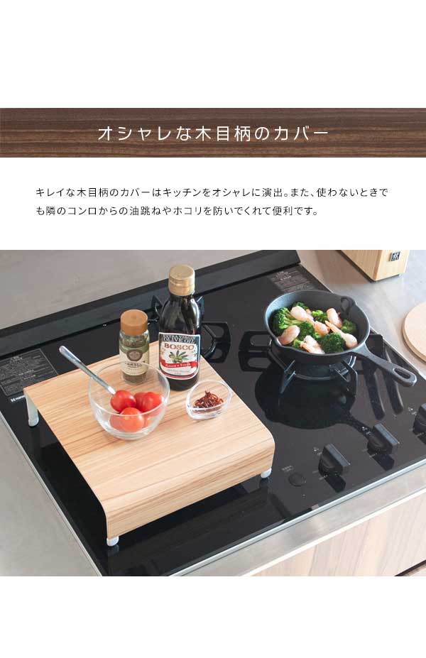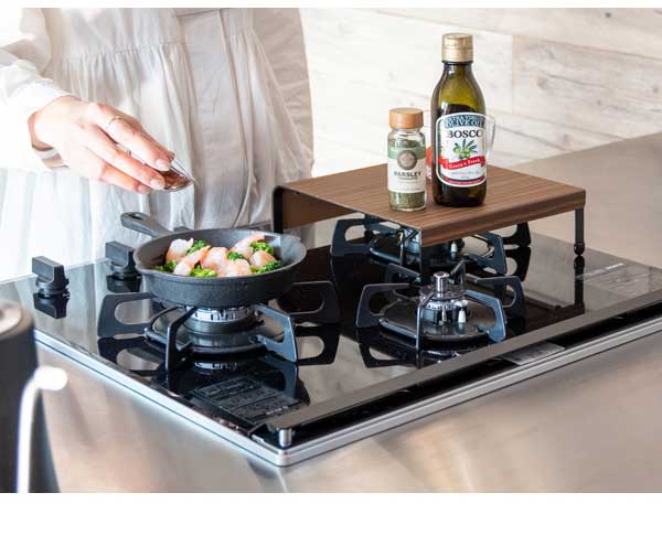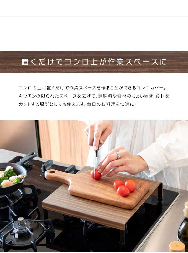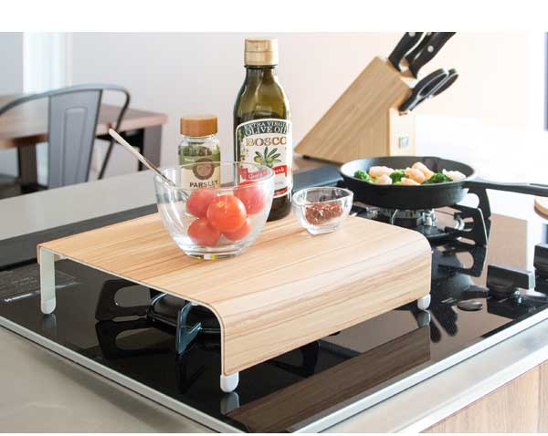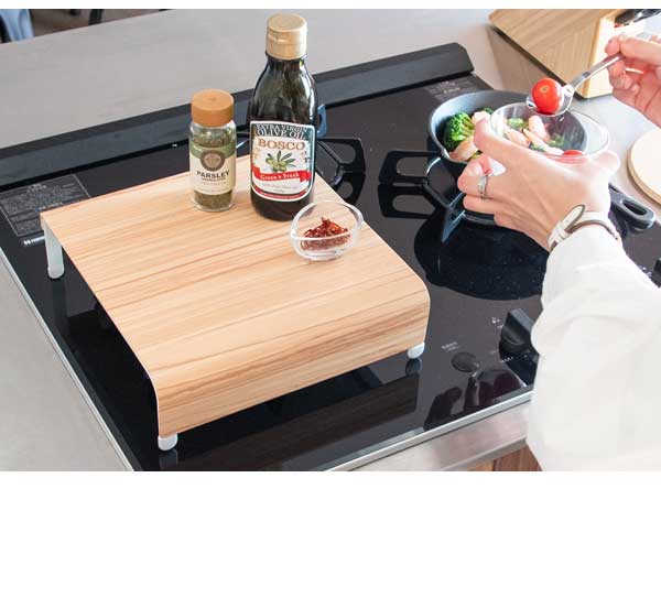 コンロの上にかぶせるだけでキッチンの作業スペースを広げることができます。料理中の食材のカット、調味料のちょい置きに便利。毎日のお料理を快適にしてくれます。