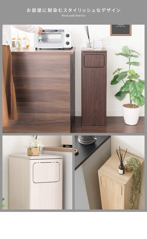 ニオイが漏れにくく押すだけで簡単に捨てられるプッシュ扉式でゴミ捨てがラクラク。幅25cmとスリムタイプなので省スペースでキッチンやカウンターの隙間に置けます。