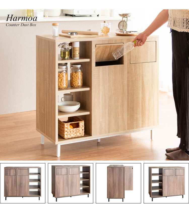カウンターダストボックス Harmoa キッチンカウンター カウンター収納 ゴミ箱 ダストボックス ごみ箱 おしゃれ 二連式 作業台 分別 大容量 木目調 ナチュラル 北欧 プッシュ式 ふた付き ごみばこ(代引不可)