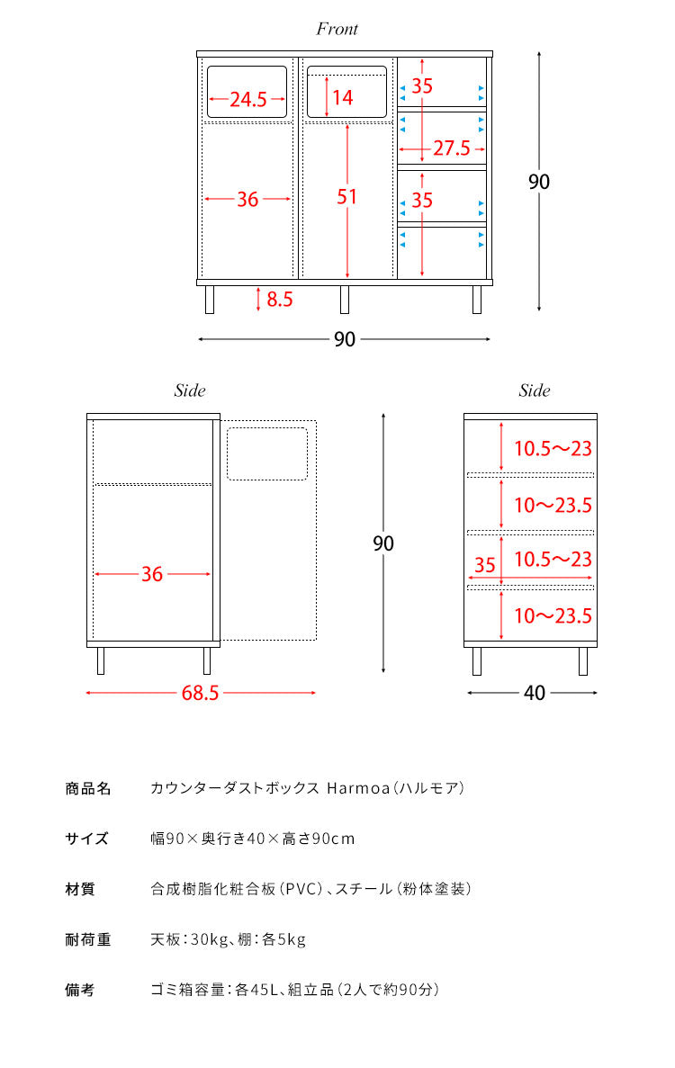 ゴミ箱容量:各45L、組立品(2人で約90分)