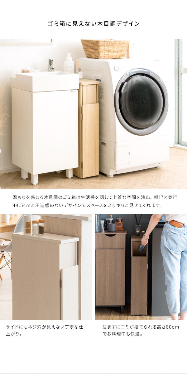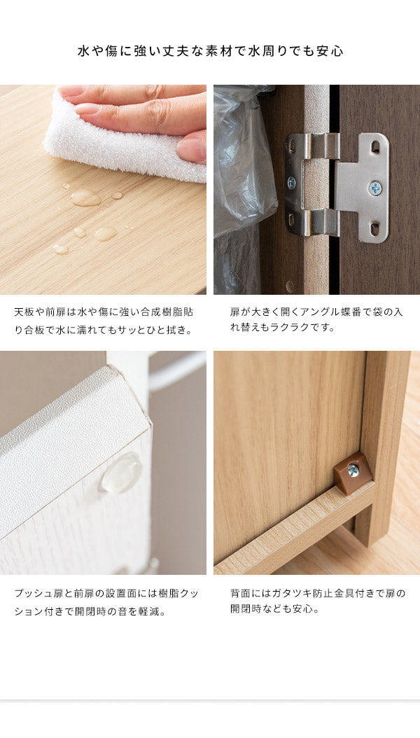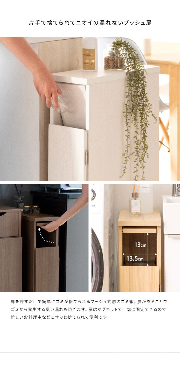 幅わずか17cmでキッチンや洗面所のすき間に置けるプッシュ式スリムダストボックス「Santia(サンティア)」。