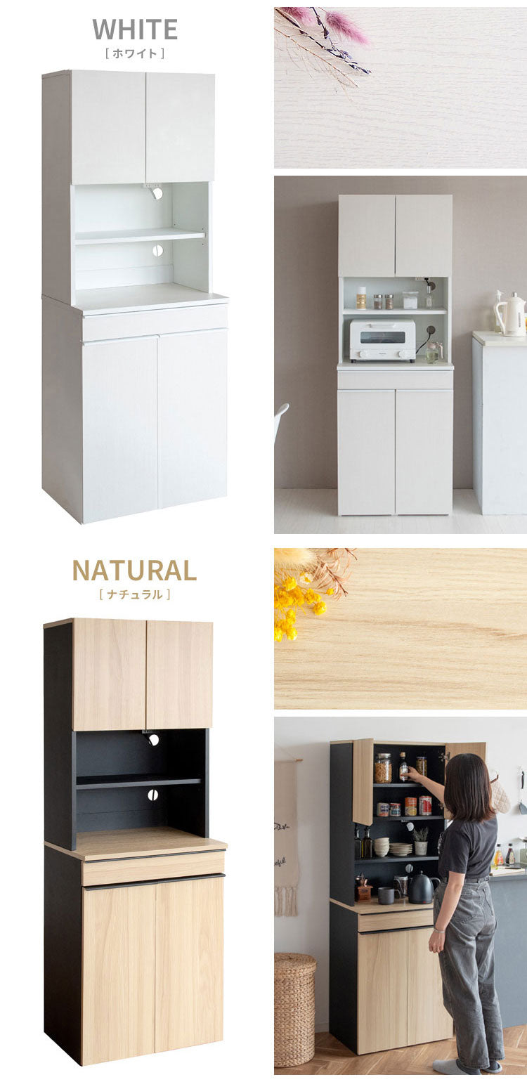 電子レンジや食器、調味料が収納できるラック付きで、デッドスペースになりがちなゴミ箱上を有効活用できます。