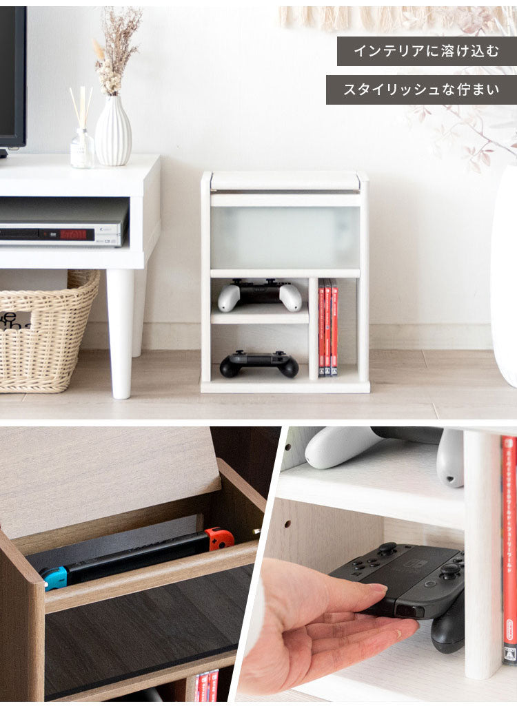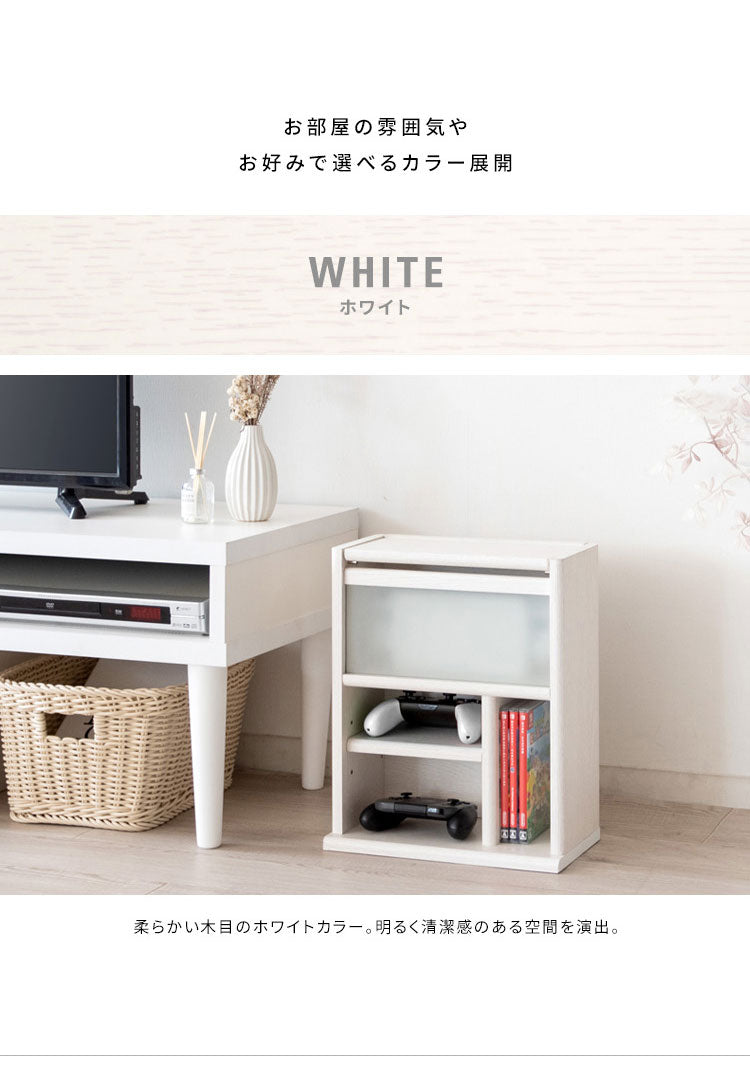 テレビ台横やゲーミングデスク上に置けるコンパクトサイズ。カラーはホワイト、ナチュラル、ブラウンの3カラーからお選びいただけます。