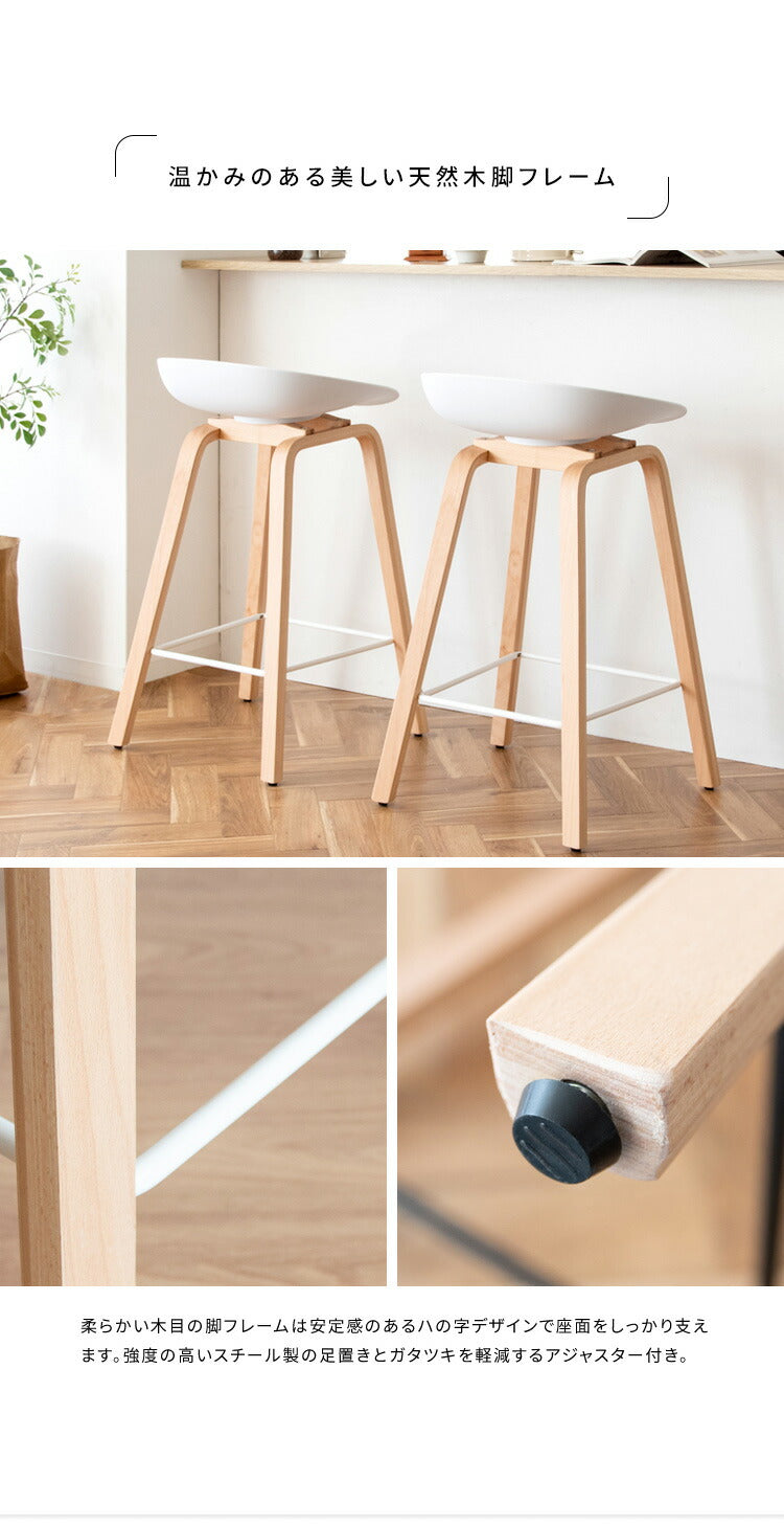 材 質 座面:ポリプロピレン、脚部:天然木、スチール
