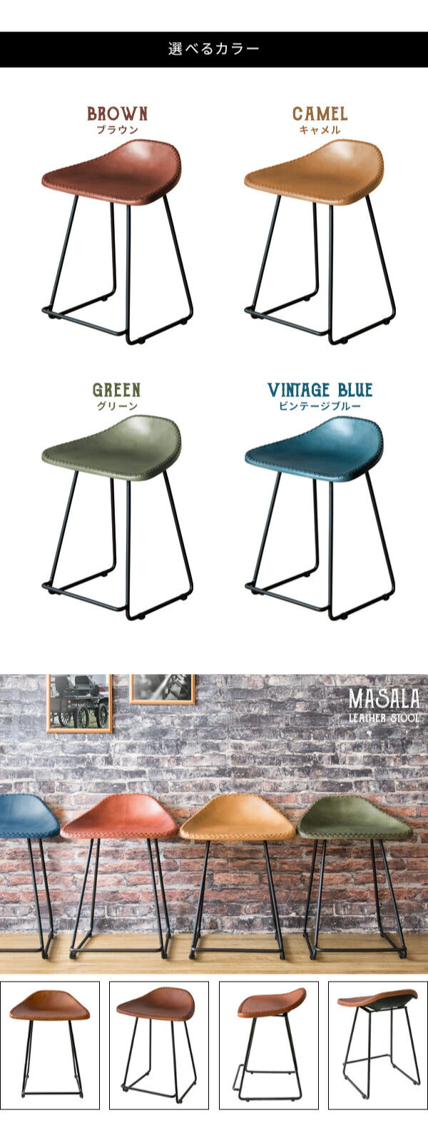 本革 スツール MASALA(マサラ) スツール 本革 山羊革 使用 ハンドメイド 本革チェア デザインスツール カウンター(代引不可)