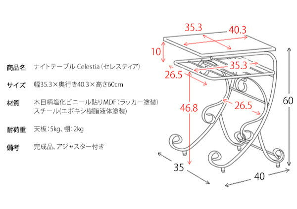 ナイトテーブル Celestia(セレスティア) サイドテーブル ベッドテーブル 棚付き おしゃれ(代引不可)
