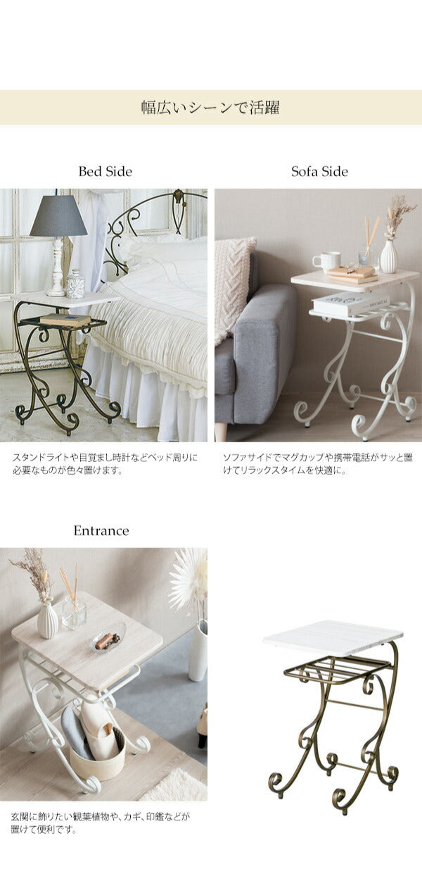 脚部の華やかな装飾がお部屋の雰囲気を豪華にしてくれます。ベッドサイドもだけでなく、ソファサイドテーブルやデスクのサブテーブルとしてお使いいただけます。