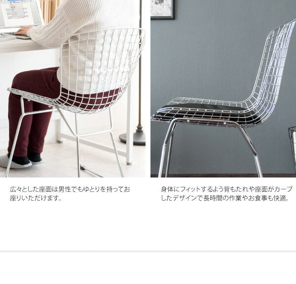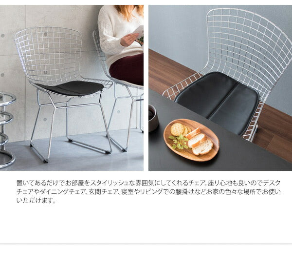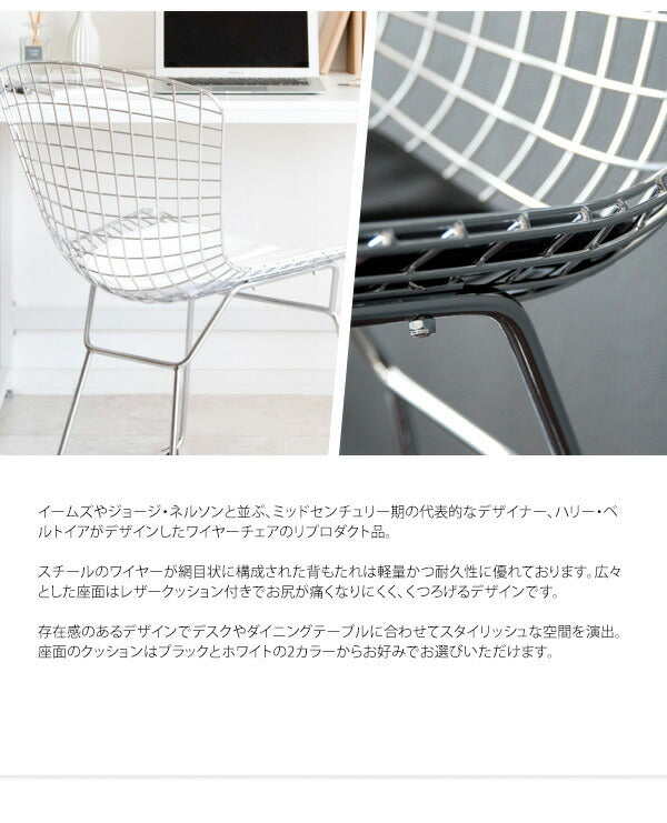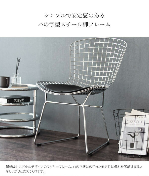 イームズやジョージ・ネルソンと並ぶ、ミッドセンチュリー期の代表的なデザイナー、ハリー・ベルトイアがデザインしたワイヤーチェアのリプロダクト品。