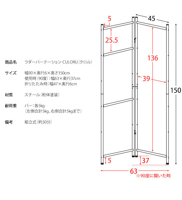 ラダーラック CULORU クロル ラダーパーテーション ハンガーラック パーテーション 室内干し ハンガー掛け 収納(代引不可)