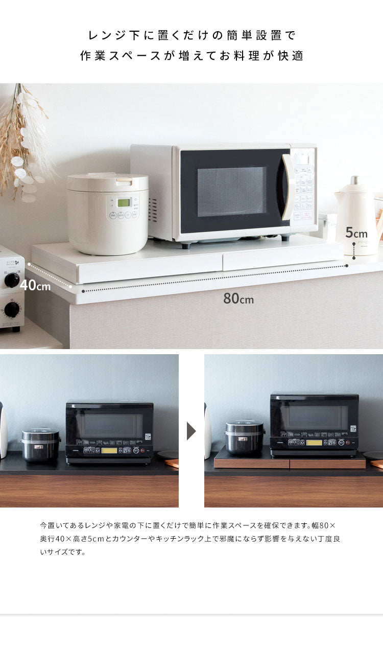 レンジや家電の下に置くだけで作業スペースが作れるレンジ下トレー『Avenir(アベニール)』。二連のトレーにそれぞれ調理器具や料理がサッと置けて家事効率アップ間違いなし。