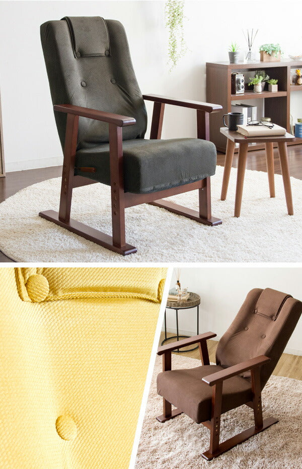 ゆとりのあるハイバックの背もたれと13段階リクライニングで読書やテレビ鑑賞、お昼寝などお好みの角度に調節してゆったりおくつろぎいただけます。丈夫な肘掛け付き天然木フレームで立ち座りもラクラク。