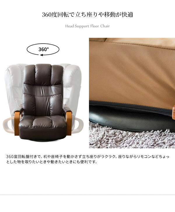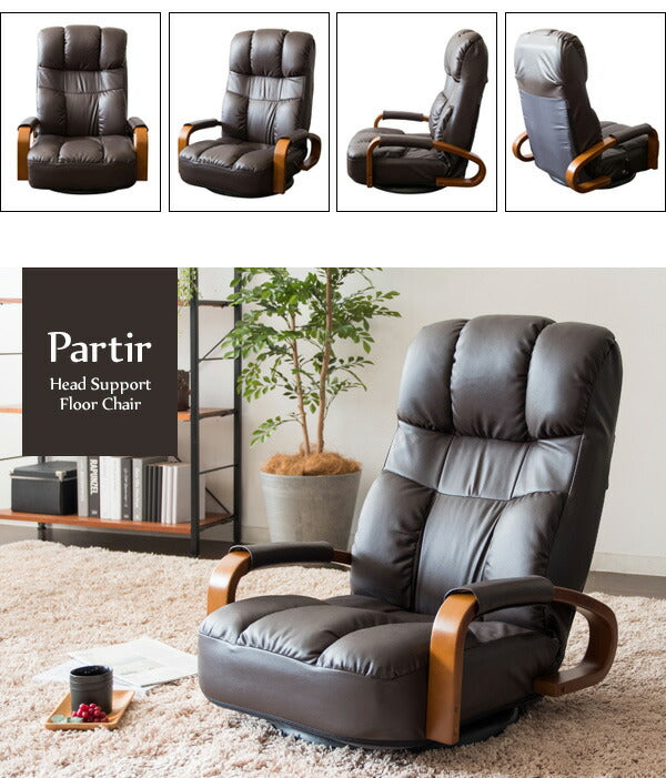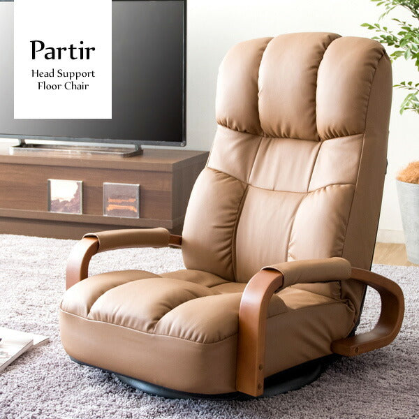 肘付き 回転式 座椅子 ヘッドサポート座椅子 Partir パルティル レバー式 無段階リクライニング ハイバック ヘッドレスト フロアチェア(代引不可)