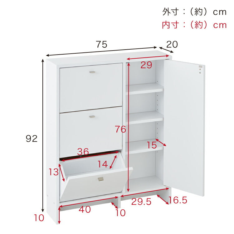 扉収納部内寸:幅29×奥行15×高さ76cm