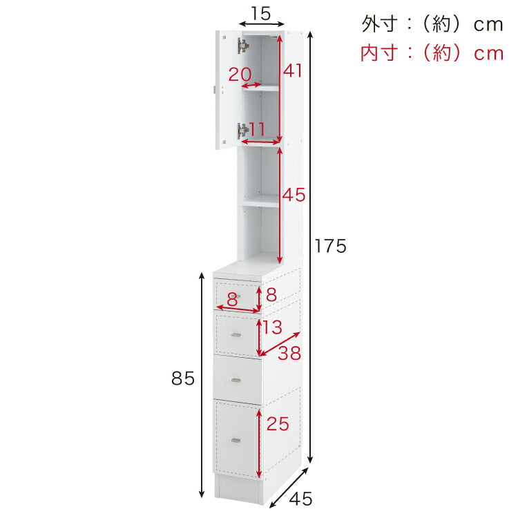 日本製 サニタリーチェスト 幅15cm すき間収納 サニタリー すき間 チェスト ランドリー 棚 ラック チェスト ランドリー収納 北欧 スリム 大容量(代引不可)