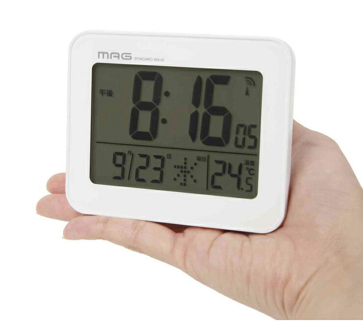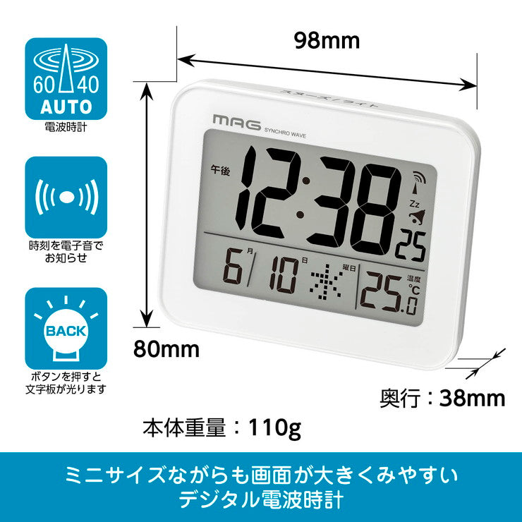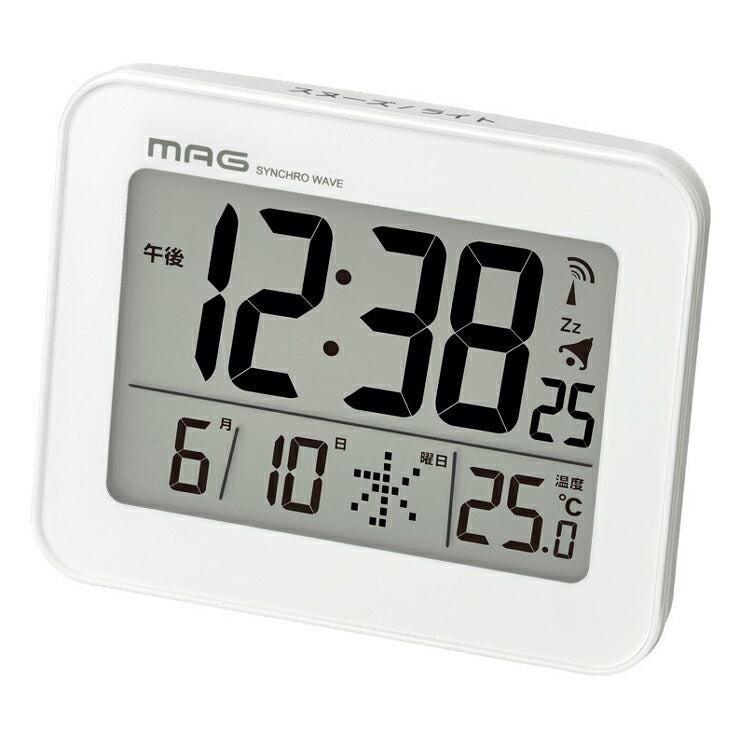 ノア精密 MAG マグ 電波目覚まし時計 コードロン T-761WH-Z 電波時計 置き時計 デジタル カレンダー 温度 シンプル 時計 時間