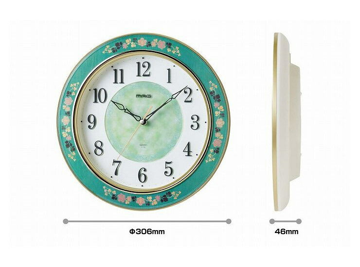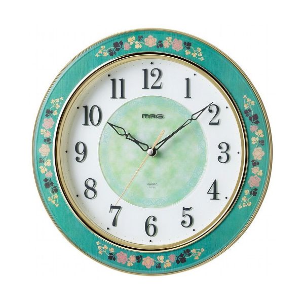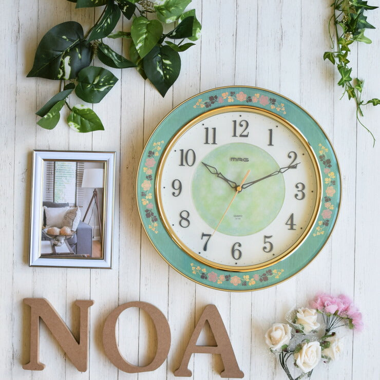 ノア精密 グリーン 掛け時計 グリーンローズ 連続秒針 W-718 GR