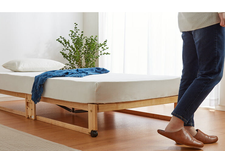 【ヘッドボードなし】中居木工 日本製 折りたたみ すのこ ベッド ひのき ロータイプ シングル 木製 ヒノキ 檜 スノコ 天然木 コンパクト 省スペース キャスター付き(代引不可)