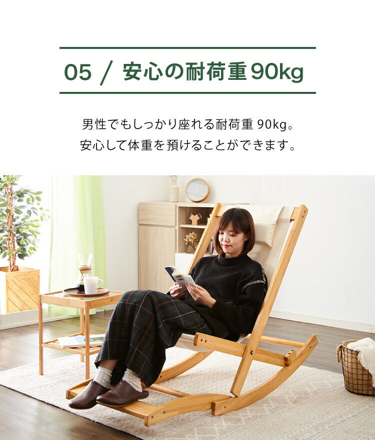 国産 中居木工 折りたたみ出来る ロッキングチェアー オットマン付き 折りたたみ可能でコンパクトに収納 北欧風 椅子 心地よい揺れ ギフト(代引不可)