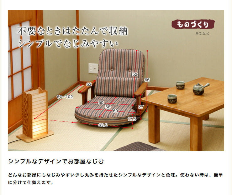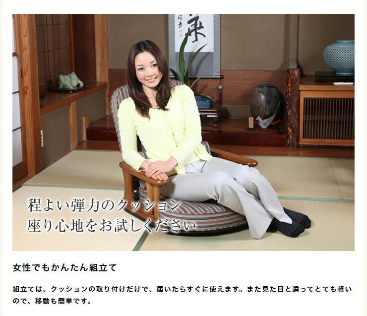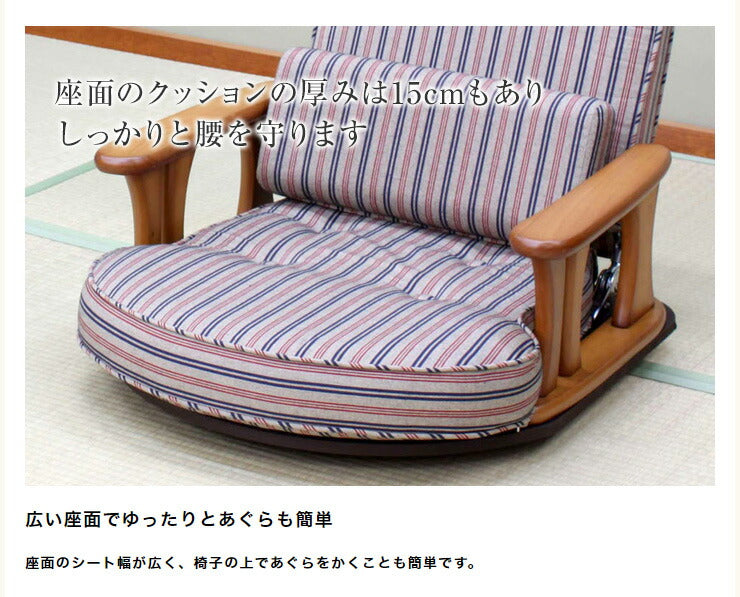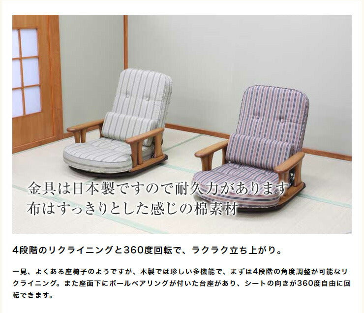 座椅子 国産 中居木工 回転・リクライニング機能(4段階切替え) 木製 座椅子 肘付き 木製 かわいい おしゃれ レトロ 回転(代引不可)