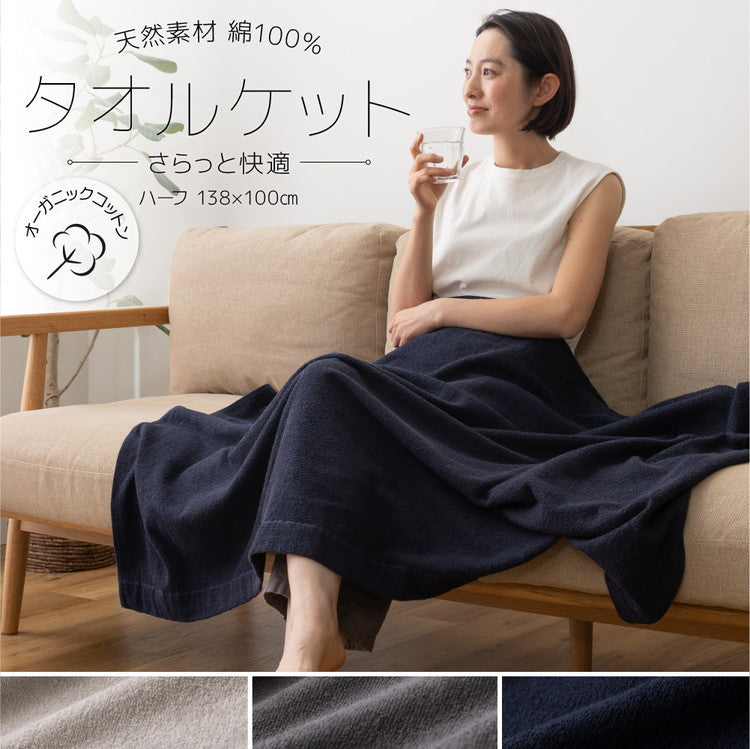 オーガニックコットンのタオルケット ハーフサイズ 綿100% 天然素材 さらっと快適 夏用 掛け布団 掛布団 肌掛け 夏掛け ブランケット おしゃれ 無地 コットン100%(代引不可)